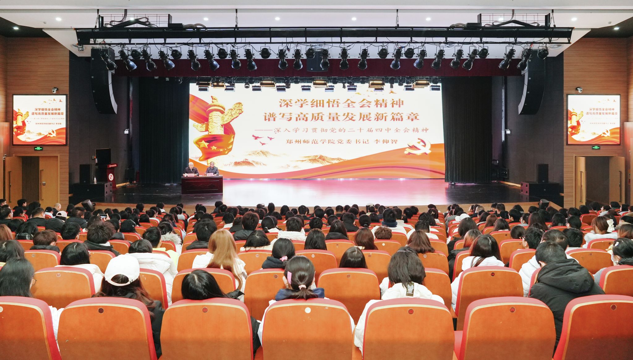 12月10日,学校召开学习贯彻党的二十届四中全会精神宣讲会,党委书记李仰智作宣讲报告。党委副书记、工会主席王治浩主持宣讲会。